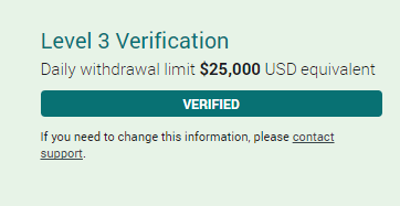 レベル3の$25,000じゃ足りない!という方はサポートセンターに問い合わせてスカイプでのビデオチャットを経て解除できるようです。