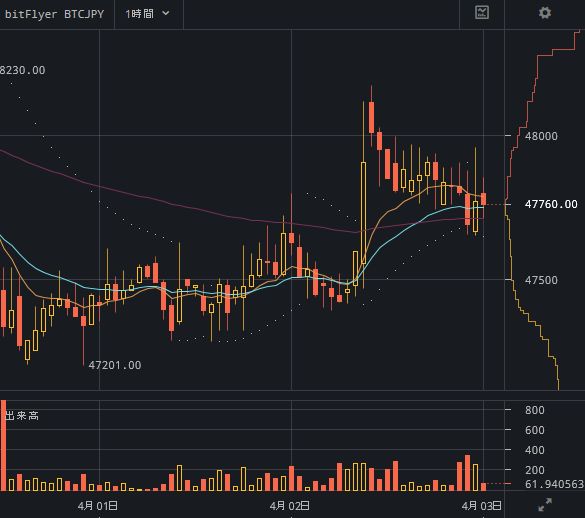 「bitFlyer Lightning」でできる細かな売り買いの注文と、1分ベースで価格の推移が見れるので、短期的な取引をしたい人は利用するほうがようでしょう。