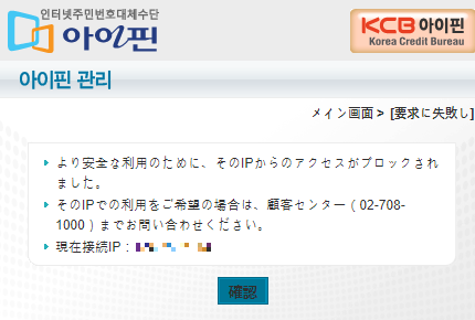 IPアドレスで本人を特定する方法のようです。韓国の国際番号は+82なので上記の番号の02-708-1000の頭の「0」を省いて電話をして、「現在接続IP」に表示されているIPアドレスを言えば認証されると思います。ただオペレーターに日本語を話せる方がいるかは不明です。