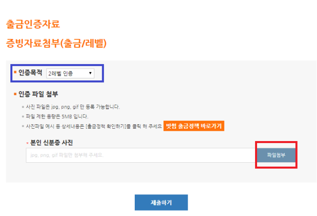 アップロードが終わりましたら、一番下の青いボタンを押せばLEVEL2への申請は完了します。後は、Bitumbの運営が許可すればLEVEL2になり一通り取引や出入金を行うことができるようになります。