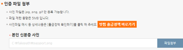 韓国国外からの利用者はパスポートによる認証が必要と記載されているので、まずはパスポートの画像(スマホ等で撮った画像で5MB以下)を用意しましょう。