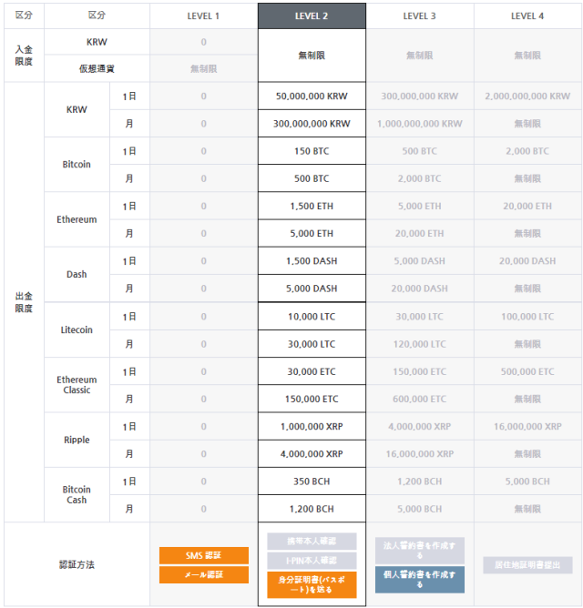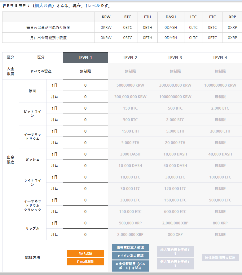 Bithumbで満足に取引をするためには、最低限認証レベルを2まで上げる必要があります。