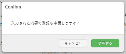 入力した情報に漏れや誤りがなければ上図のようなウィンドウが表示されますので、間違いがなければ「承認する」をクリックしてください。