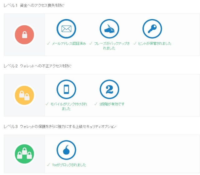 以上、すべてのセキュリティ設定を終えれば下図のような表示になり外部からあなたのウォレットは保護されます。