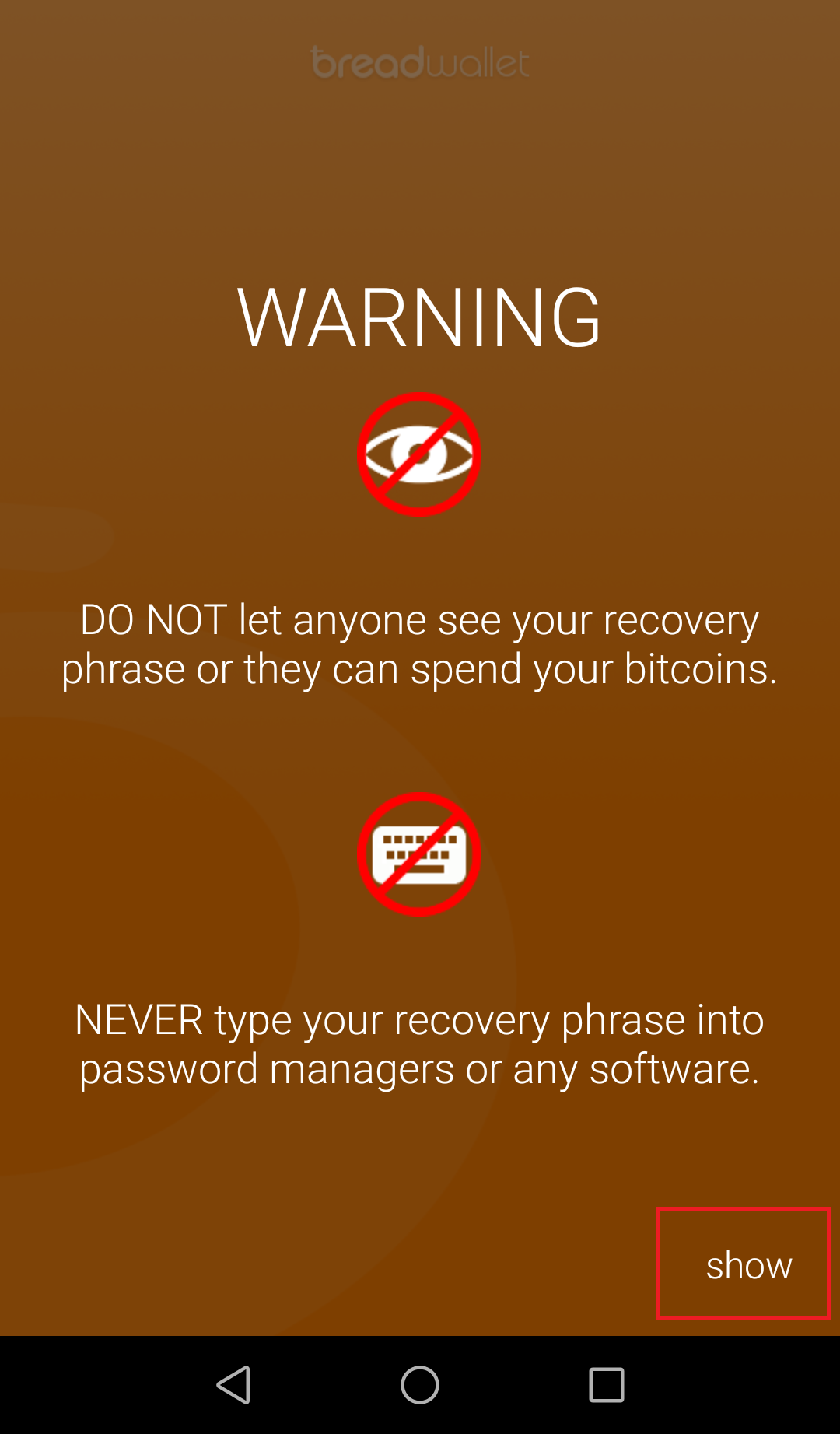 If you ever lose your phone, you will need this phrese to recover your wallet