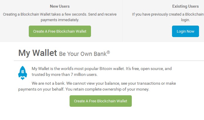 緑色の「Create A Free Blockchain Wallet」をクリックします。