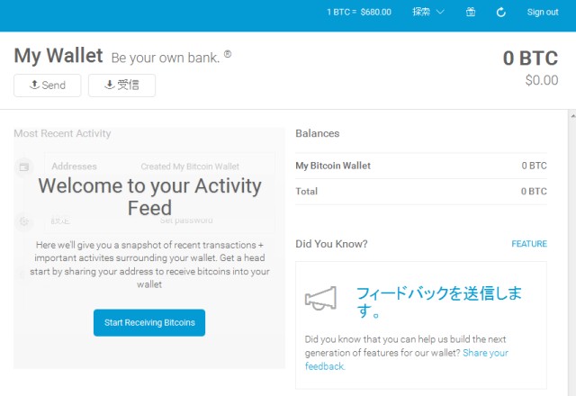 「Start Receiving Bitcoins」をクリックします。