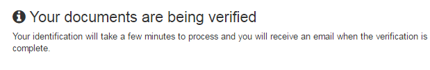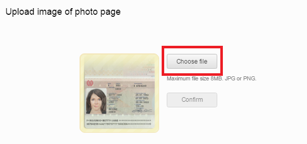 赤枠の「Choose file」をクリックして用意しているパスポートの画像をアップロードします。次に、本人の画像の提出も求められるので同様にアップロードして送信すると下図のようにメッセージが出ます。