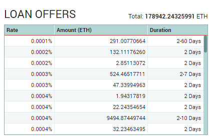 逆にショートをする場合(例えばETH)は、LendingのETHのLoan offersの安い順から借りることになります。