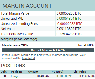 PoloniexのMargin Tradingのレバレッジは2.5倍なので大体このくらいの量のポジジョンを持つことができますという目安にしてください。