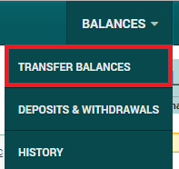 追加でMarginへ入金したい場合やMarginからExchangeへ出金したい場合は、画面上部にあるメニューの「Balances」→「Transfer Balances」から手続きを行うことができます。