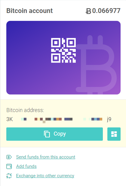「Bitcoin account」をクリックして「Send funds from this account」をクリックします。