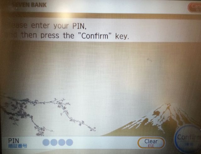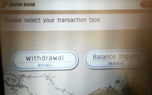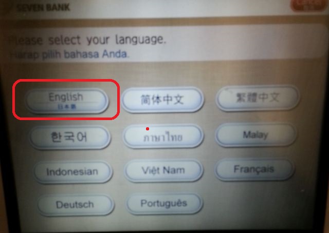 手順は、基本的には日本の銀行のキャッシュカードで現金を引き下ろすのとあまり変わりませんが、海外のカードなので画面には英語がちょいちょい混ざってきます。