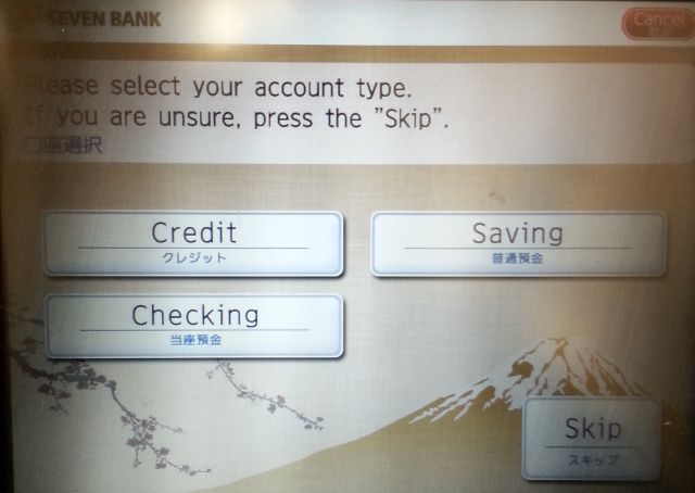 よくわからない場合は、右下の「Skip」をタッチしてくださいってことなので、デビットカードはどれなんだろう?わからないのでそのまま「Skip」をタッチ。