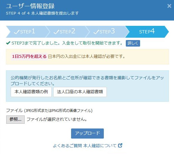 アップロードが終われば一通りZaifを十分に使う準備が整います。後はZaifの運営から身分証明書の確認が終われば登録したメールアドレス宛に「Zaif通知:本人確認が完了しました」というタイトルのメールが届きますので、それ以降はZaifの機能をすべて使うことができるようになります。