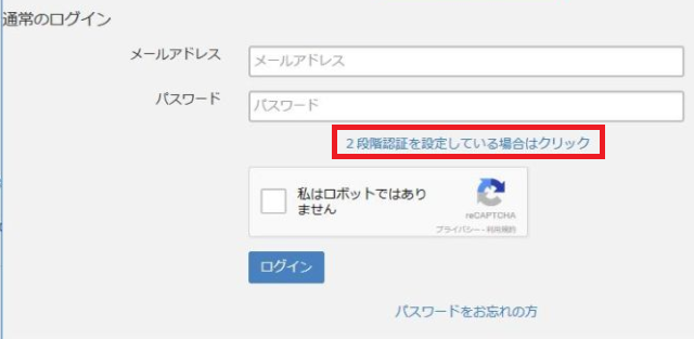 メールアドレスとパスワードを入力した後、赤枠の「2段階認証を設定する場合はクリック」 して6桁の数字を入力しましょう。一応、同じ端末からログインするときは2段階認証を省くかどうかのチェックボックスがありますので本人以外しか触らない端末であればチェックを入れることによって二段階認証の入力を省くことができます。