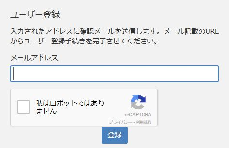 「無料登録をコチラ」をクリックするとアカウント登録ページに進みますので、メールアドレスを入力後「私はろごっとではありません」にチェックを入れて「登録」をクリックします。
