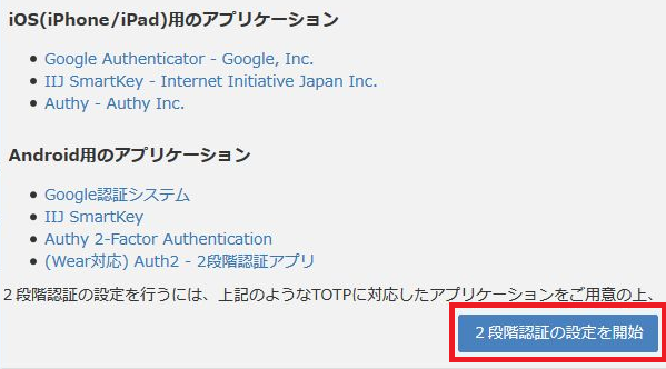 2段階認証の設定